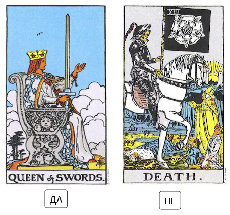 В моя случай картите казват НЕ, защото за отговора не се пада голям аркан и той доминира над дворцовата карта.