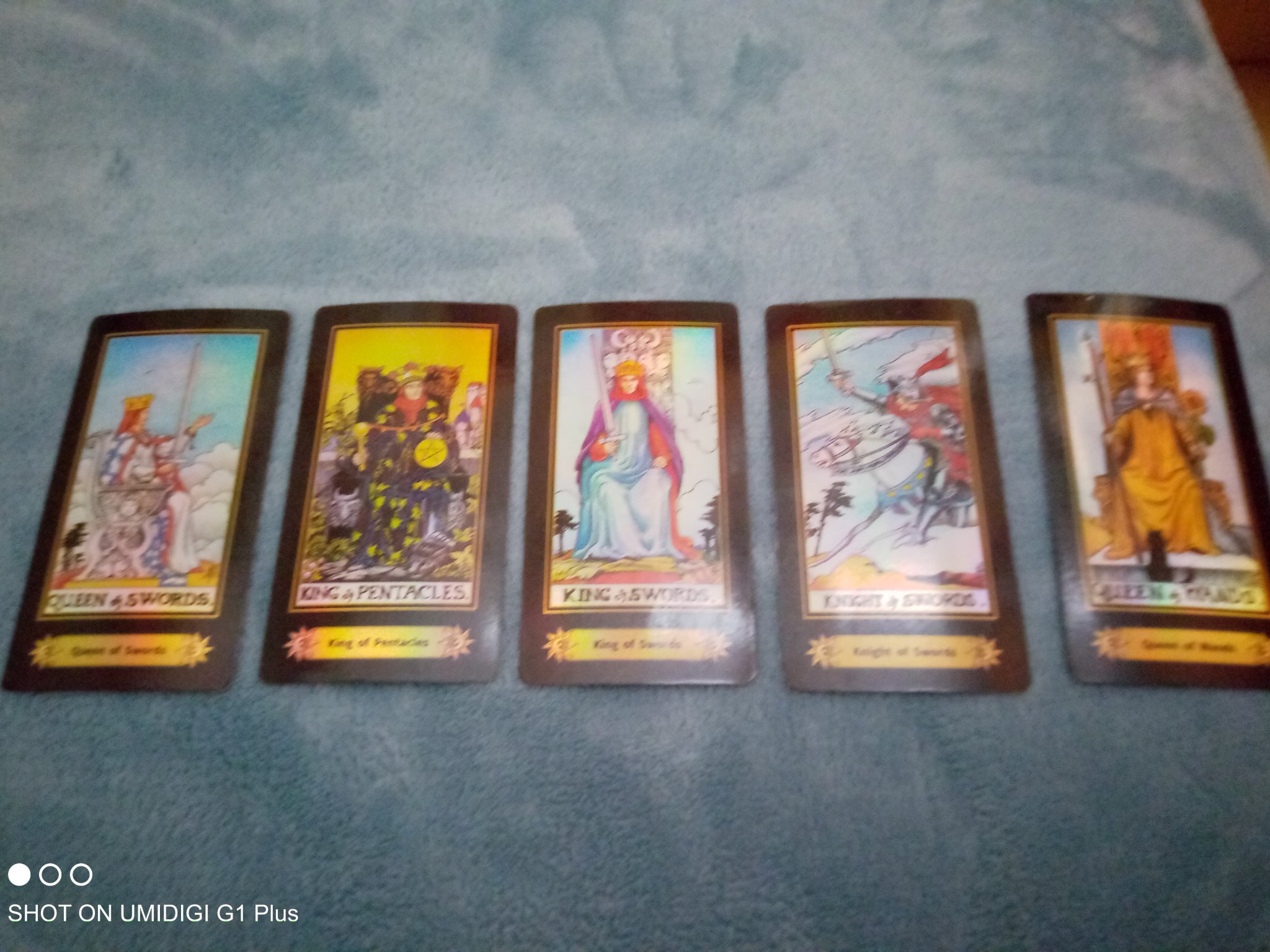 Вече по картите. Аз в картите не виждам прекъсване на отношения, но в случая ти знаеш контекста, а ние не. Съдийски само по тези три карти без друга информация, която е важна, мога да кажа, че тук има намесен трети човек. Ако става въпрос за брак, то това може да е адвокат или терапевт или трето лице, което дава акъл.