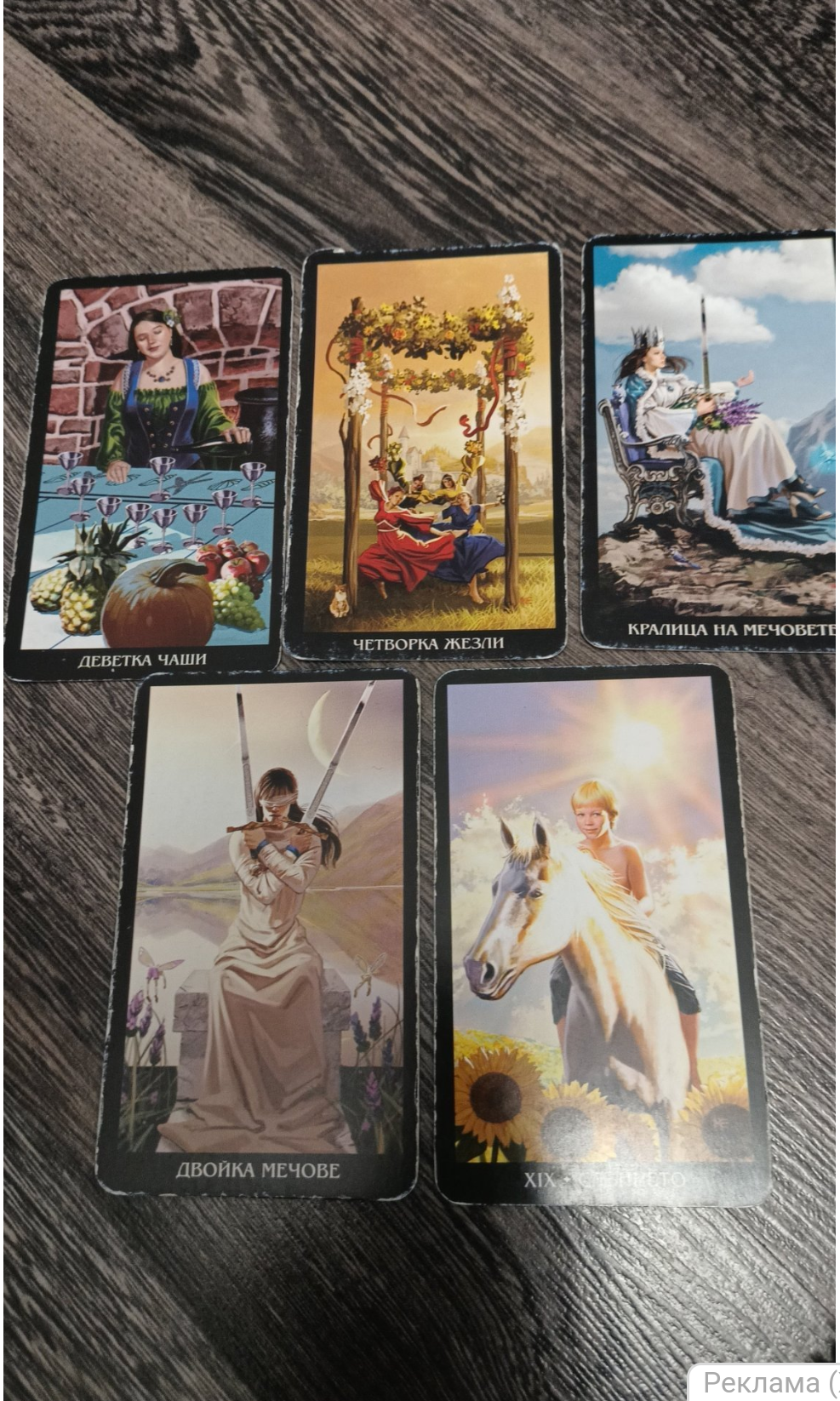 Във всеки случай най-голяма полза бихте имали ако се вгледате в собствения си прочит на картите. Поне в моя опит, това дава една важна странична перспектива, която ни помага да изясним собственото си положение в ситуацията.