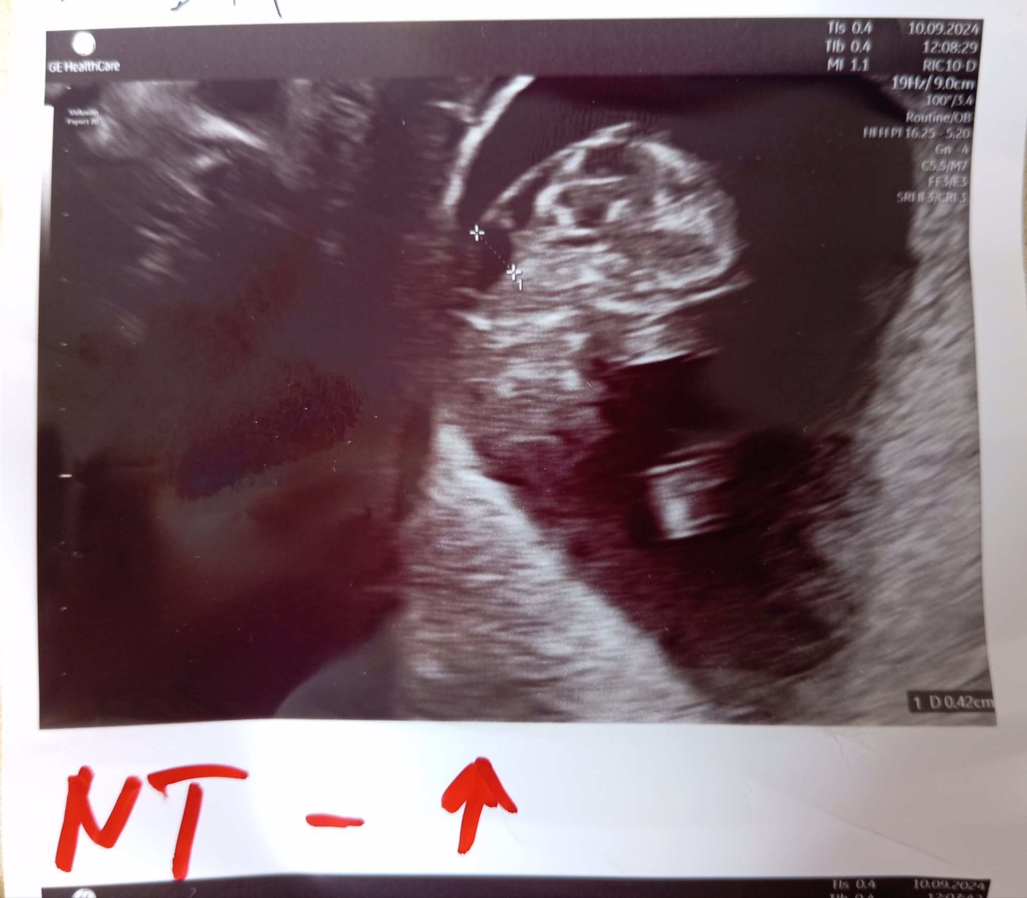 NT (neck thickness или гъвкавост на врата) е ултразвуков показател, който се измерва за оценка на риска от хромозомни аномалии. Нормалните стойности за NT са под 3 мм, но за точна интерпретация е необходимо да се разглеждат и други маркери. Стойности над 3,5 мм увеличават риска и могат да наложат допълнителни изследвания.