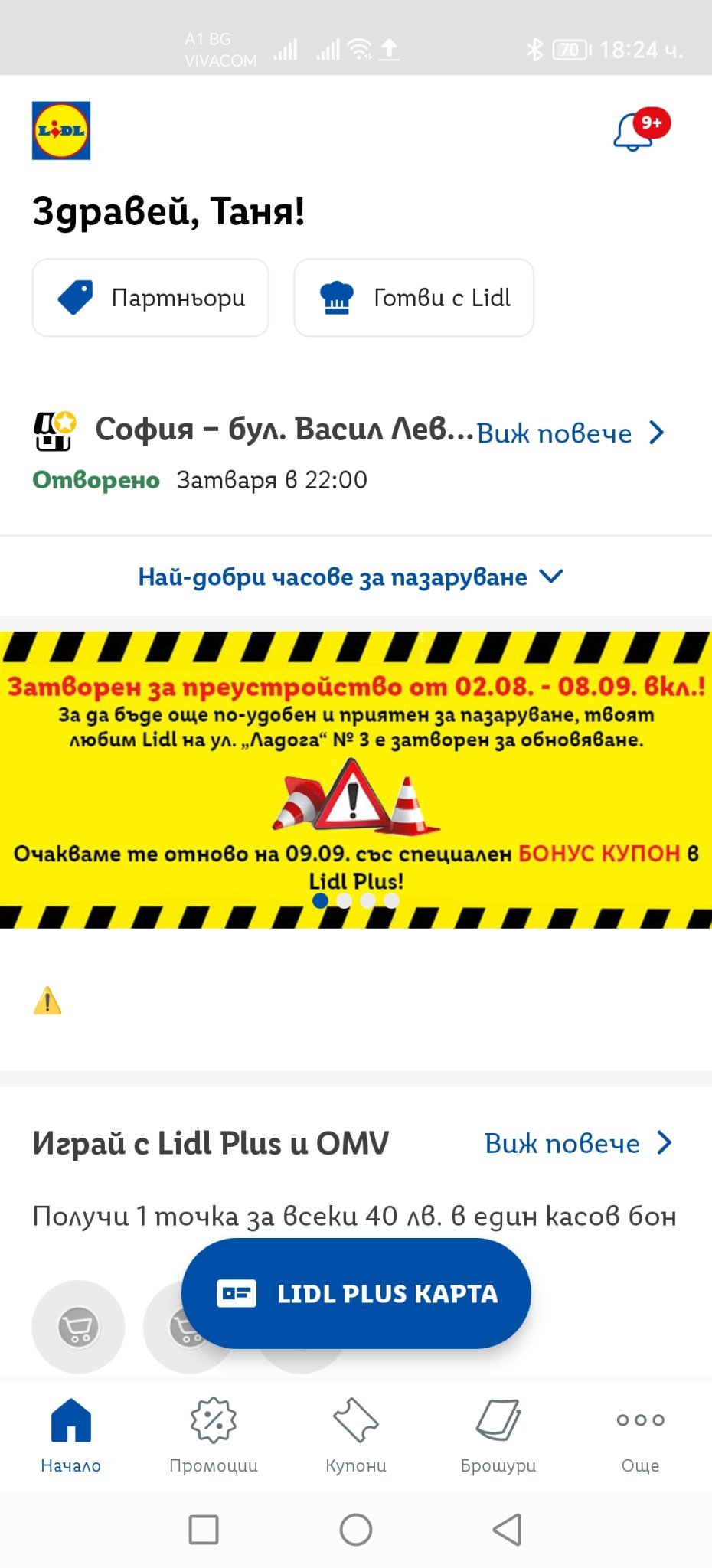 Нямаш ли жълто съобщение в приложението? На мен ми вади очите всеки път като го пусна, макар вече да върнах като любим близкия до нас магазин. Няма да работи до 8.09 включително.
