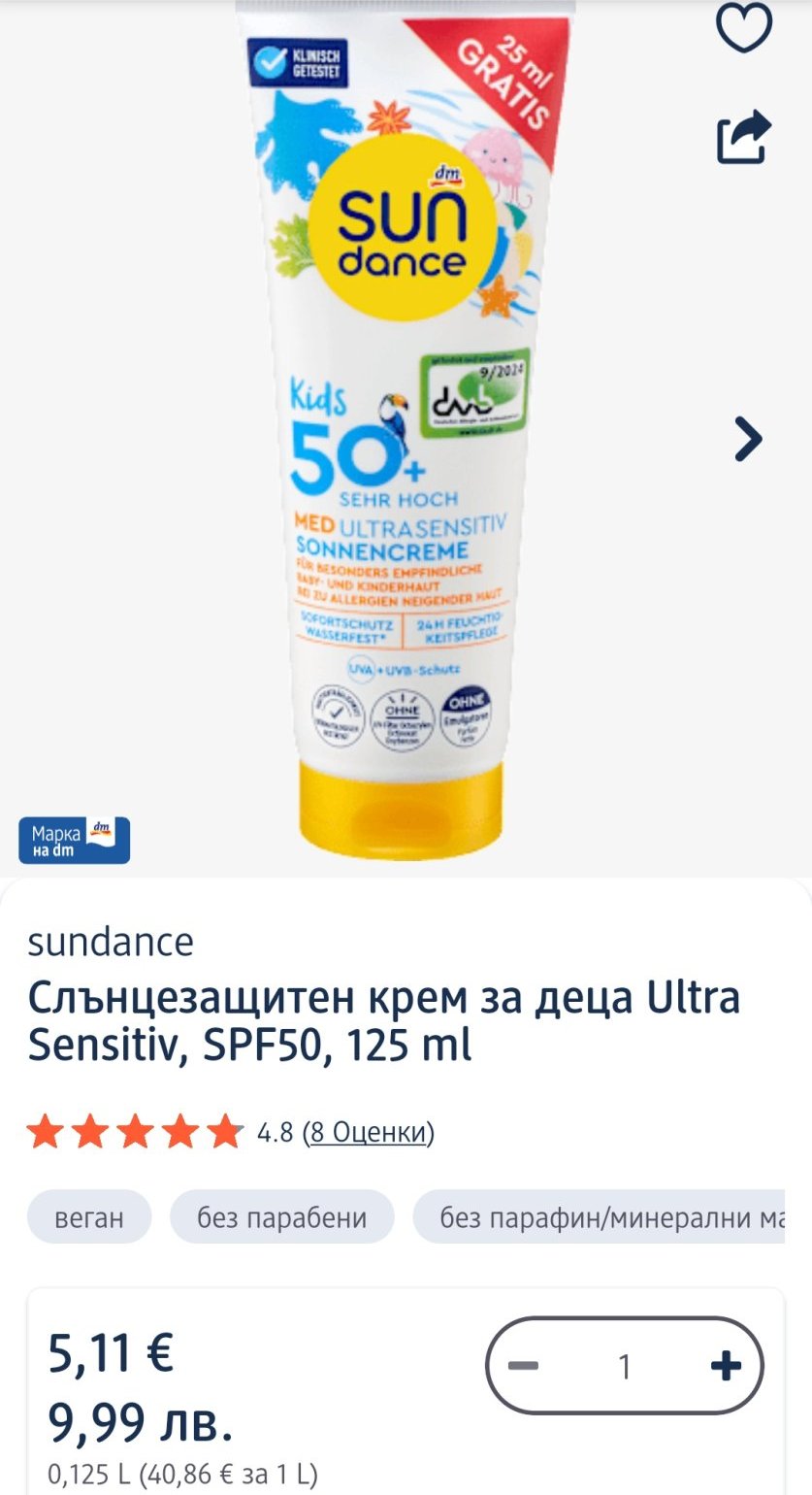 За слънцезащитните на DM - детската и другаря за чувствителна кожа са много добри, като и двете стават всъщност и за деца, и за възрастни.