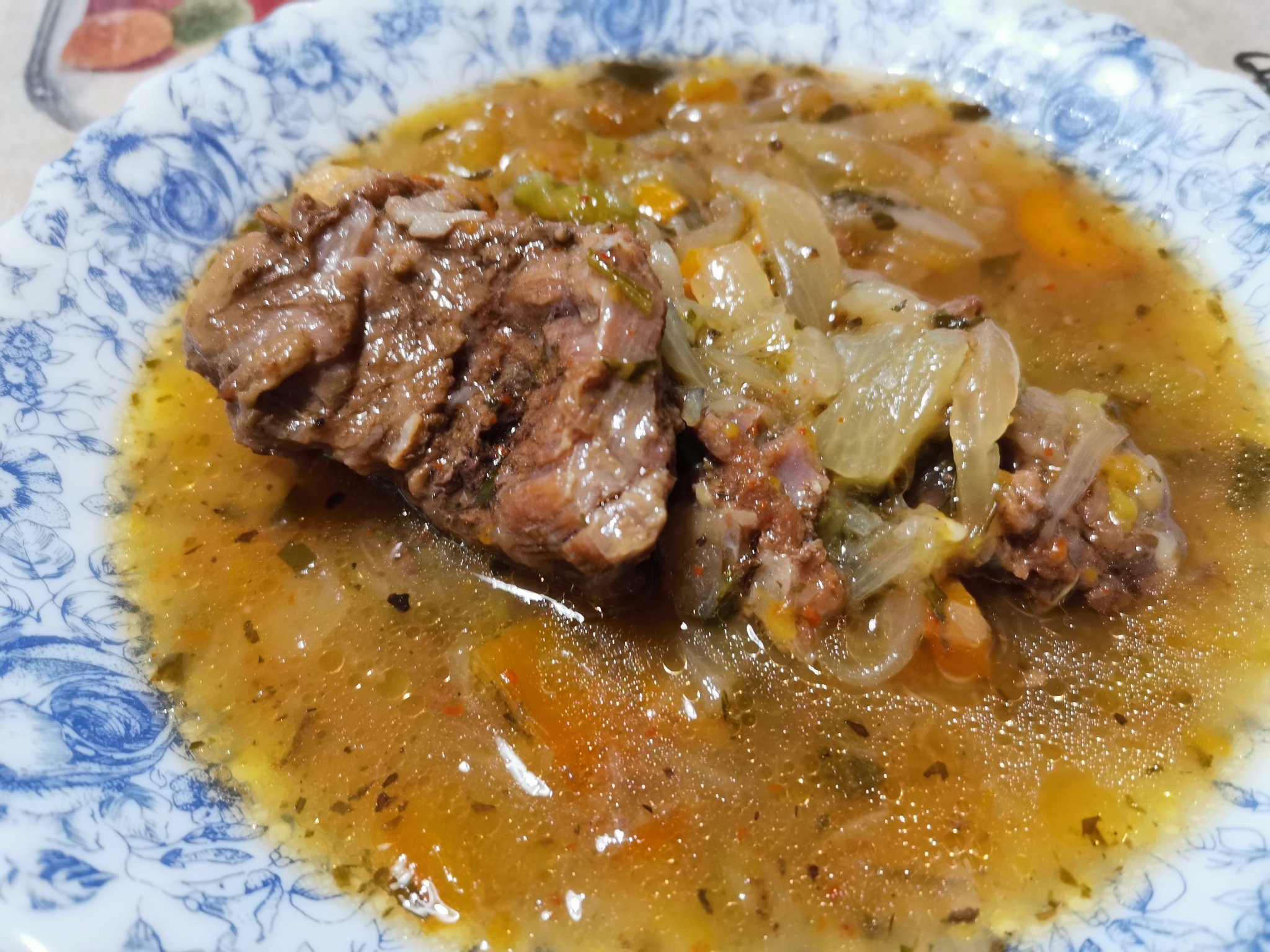 Когато си на... "и аз съм жена" и не сте решили "какво ще ядем" прибирайки се, заварваш в къщи супа от св.месо и салата:
