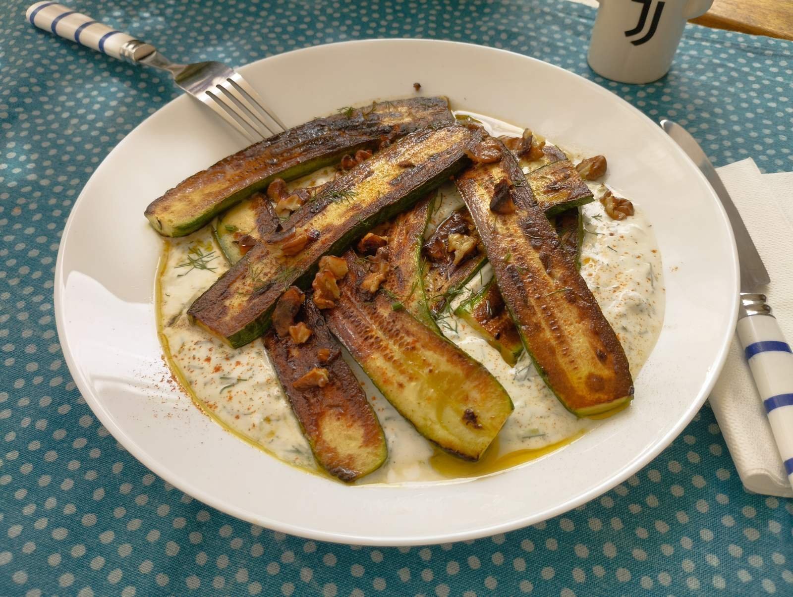 Тиквички на тиган. Тиквичките взеха да стават повече отколкото можем да изядем, но тези още не са ми омръзнали. Grinning