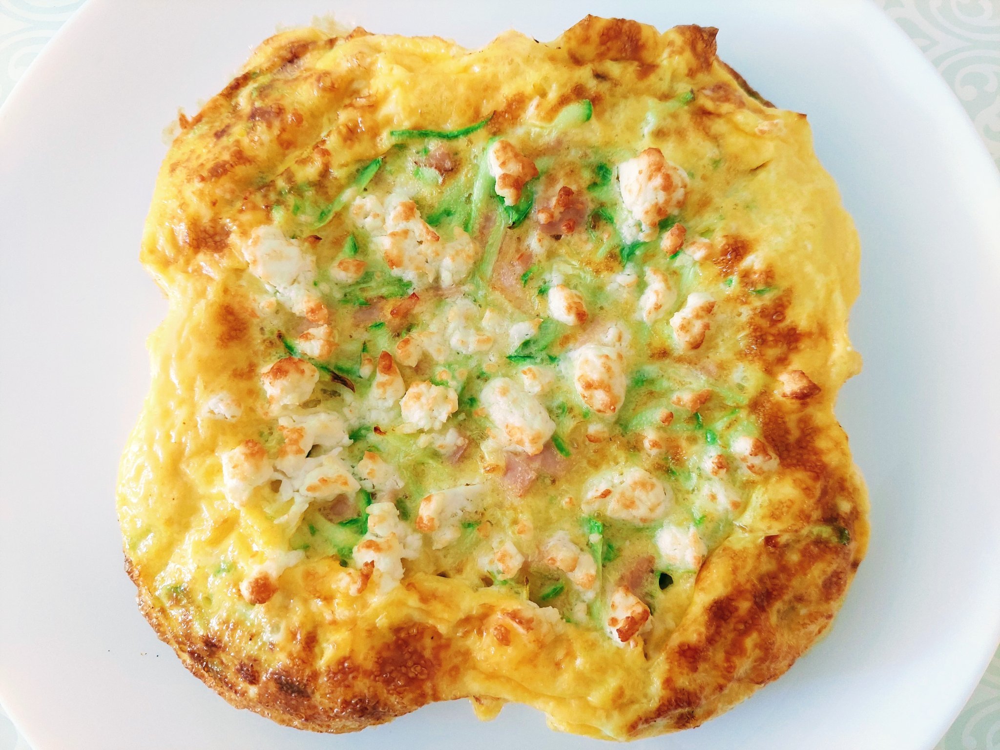 Омлет с тиквички, сирене и шунка в еър фрайъра.