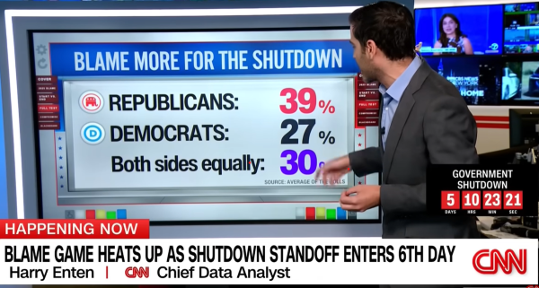 Chainik@ 39 points в черевено в картинката не значи отризателно число.Значи, че 39% смятат, че републиканците са виновни за затварянето на фед. правителство. 27% смятат че демократите са виновни и 30% смятат, че и двете партии са виновни. Рейтинга на Тръмп не е равен на рейтинга на републиканците..