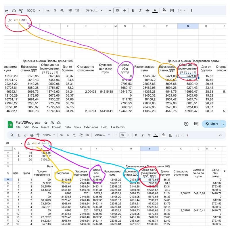 Що се отнася до бюджета и данъчните приходи след смяна на плоския с прогресивен, имаш грешка в изчисленията.
