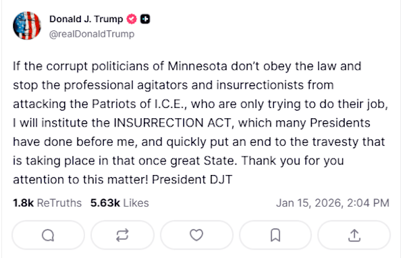 На 2 януари Тръмп прекара част от деня си, публикувайки произволни снимки на вятърни мелници, като в една от тях твърдеше: "Орлите падат!", въпреки че птицата на снимката не е орел, а самата снимка е от Испания, не от Америка. Очевидно мъжът е навлязъл в своята донкихотовска фаза на "борба с вятърни мелници“.