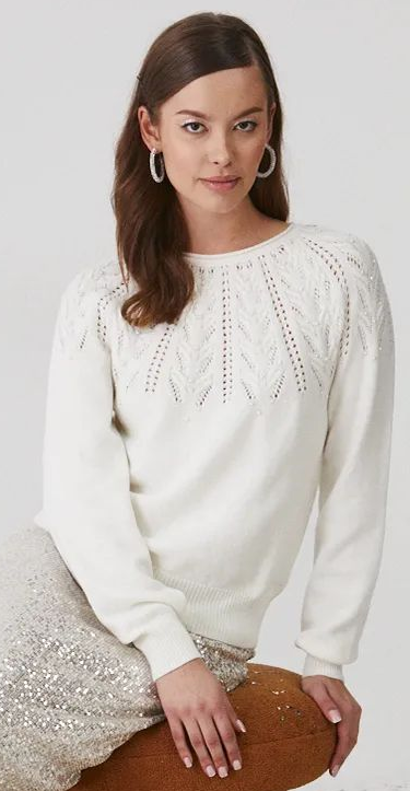 На Копчето белия пуловер ми хареса много, на за съжаление и аз вече не търпя нищо около врата си. Бих носила нещо подобно, но пуловер с остро деколте.