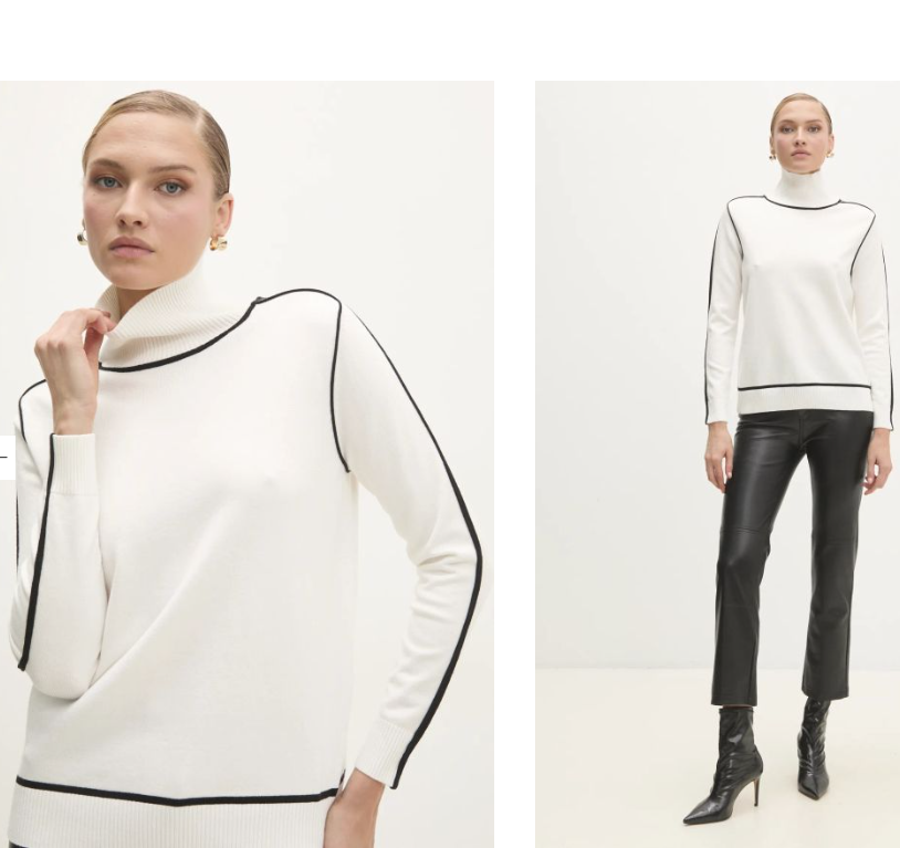Този пуловер е с много хубав състав с кашмир 40%- затова и поръчах. Но се улових, че в един момент съм като моделът на снимката в ляво. Ръката ми държеше полото през повечето време и го върнах, съответно. Не мога да нося и търпя поло вече! Възрастови изменения, явно. Satisfied