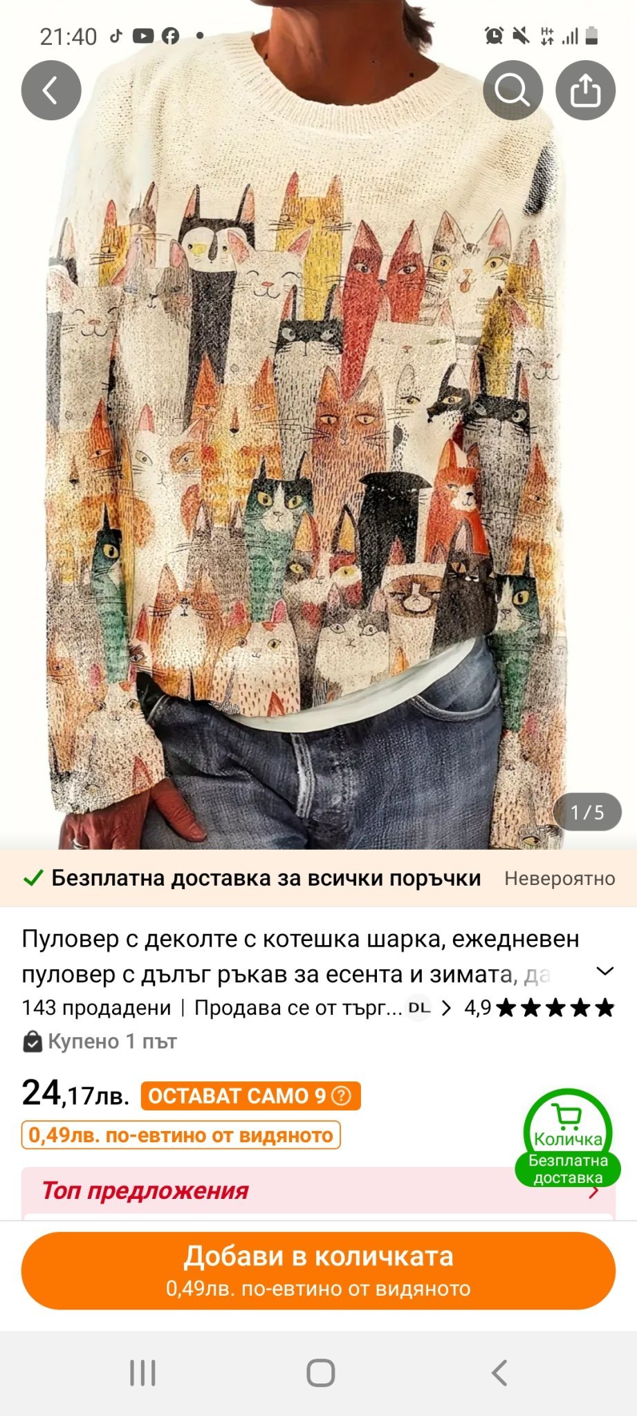 Последният пуловер от Temu ли е? Излезе ми като реклама техен в бежов вариант. Прищя ми се да го взема, но още не мога да се престраша да пазарувам от тях.
