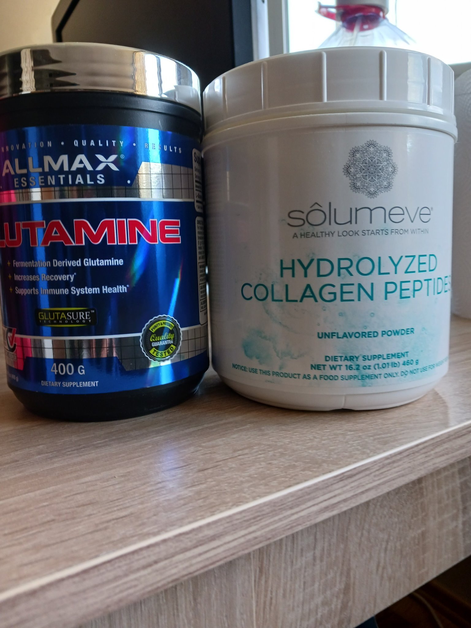 Здравейте, колаген на прах и глутамин на прах могат ли да се смесват в една чаша с малко вода и да се пият едновременно на гладно или трябва да има интервал между тях?  За тези двете ми е питането: