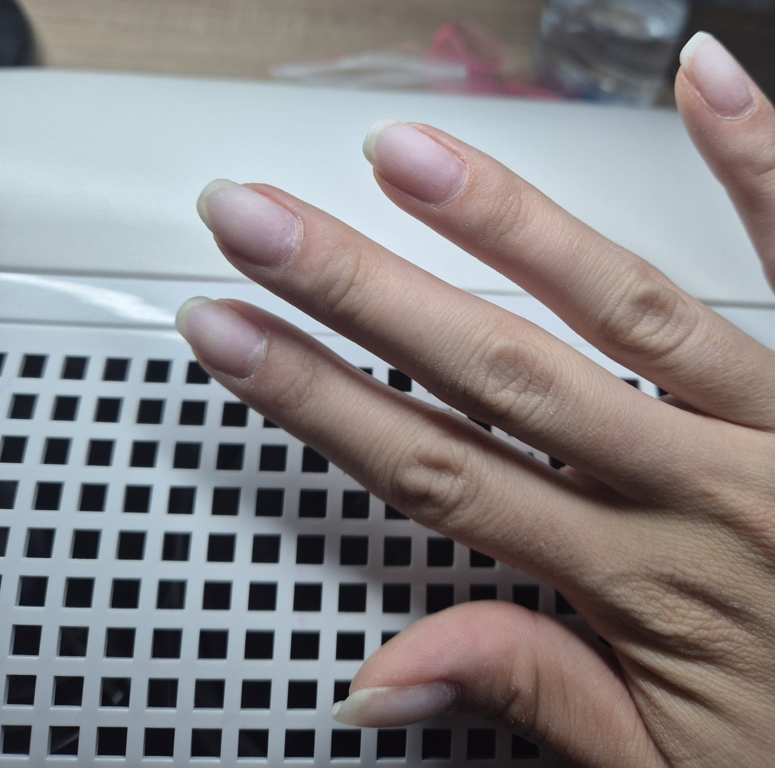 Последния път имах на много места разслоения и свалях лака буквално цял ден, защото всеки нокът го пилих до дъно и предвидливо си казах тази вечер ще ги сваля, утре ще ги дооформям и лакирам. Изненада! Нито един разслоен нокът, на нито едно място повдигнала се база. Направо останах много приятно изненадана. И честно казано ноктите ми са много твърди, което е супер.