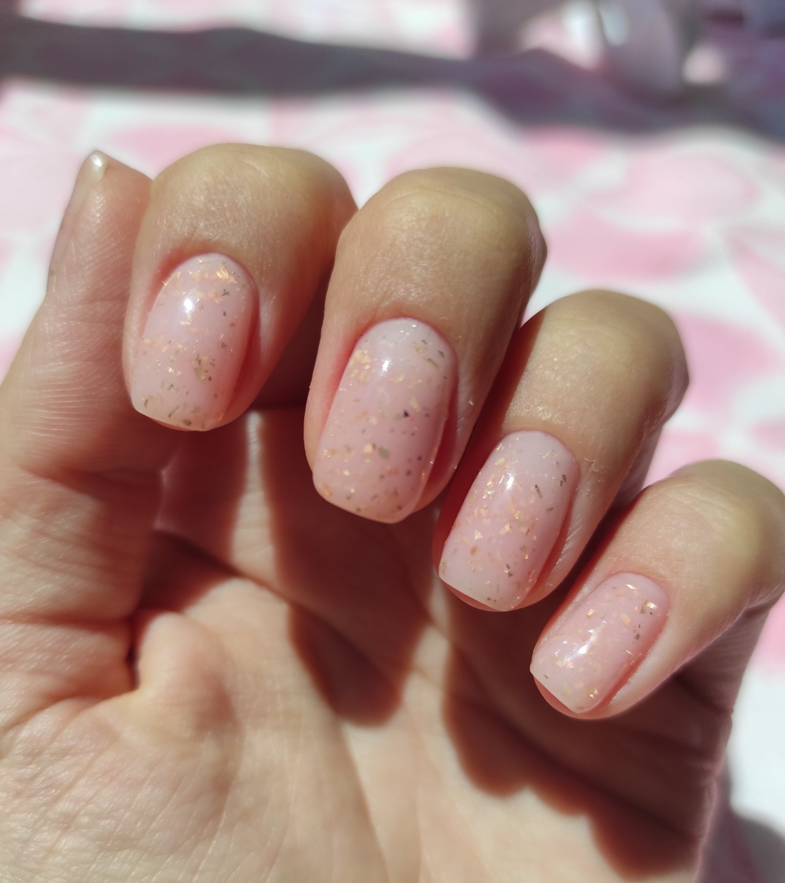 Нещо постно от мен, но от сърце 😀 Все повече оценявам предимствата на цветни и с частици бази - бързо и с готова визия. Имах всъщност други планове за ноктите си, но детето не ме остави и приключих с базата на Moon