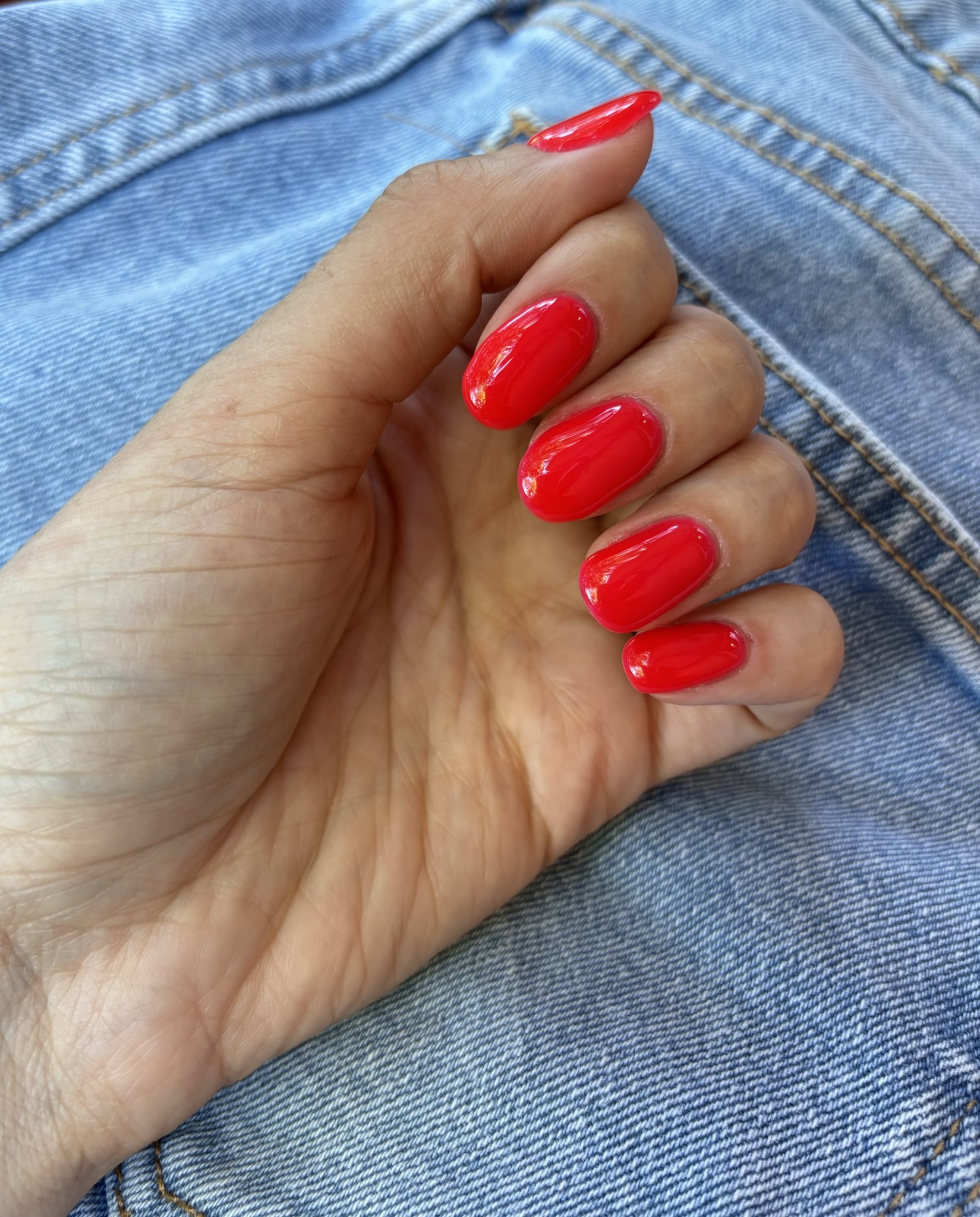 На живо е чист корал, много хубав, точно за лятото. Базата е не много гъста и не много рядка, по средата. Изравних много лесно, буквално сама се разля. Четката - супер удобна.