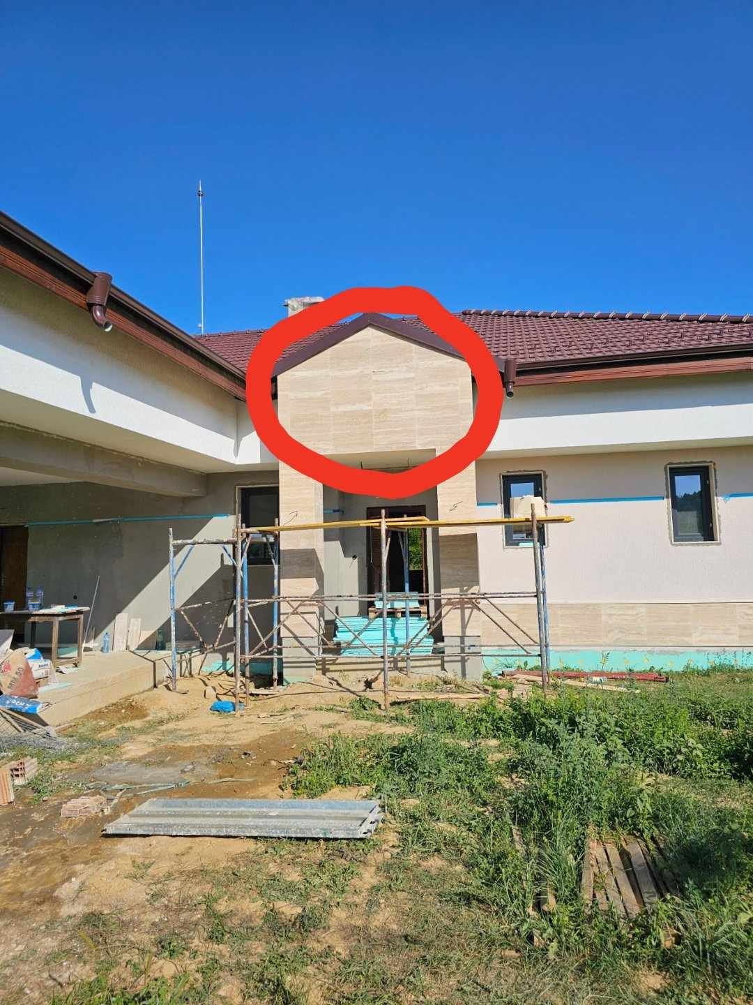 Здравейте на всички! В момента сме на етап фасада на къщата. Използваме камъни травертин, камъни варовик Враца и мазилка. Относно триъгълната зона над входната врата - имате ли идея как може да се завърши по някакъв начин, тъй като в момента стои сякаш нещо й липсва. Благодаря!