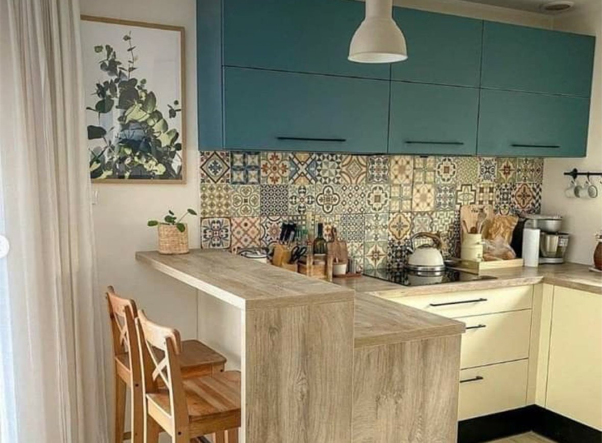 Мацки, дайте идея какъв цвят (без бял)за останалата част на холокухня пасва на това ? Хич не съм фенка на пачуърка(затова и нищо не ми хрумва) , но става дума за освежаване при близка..