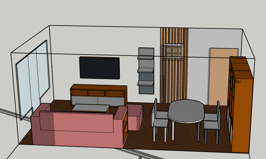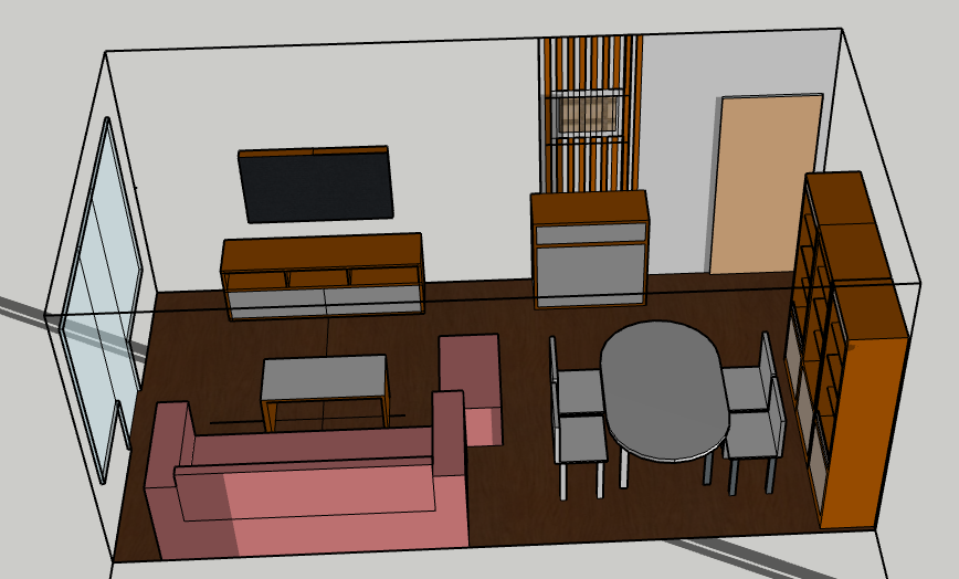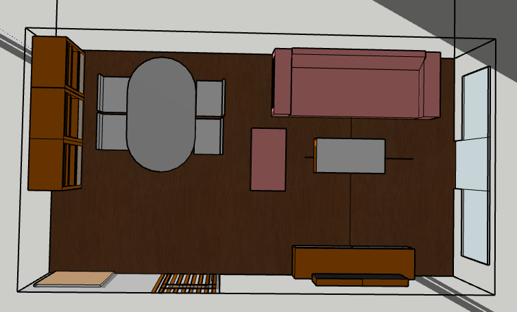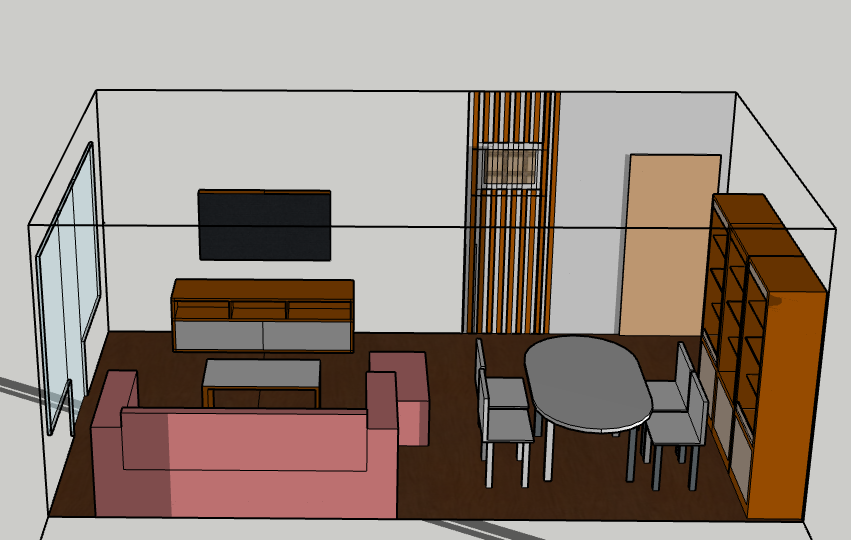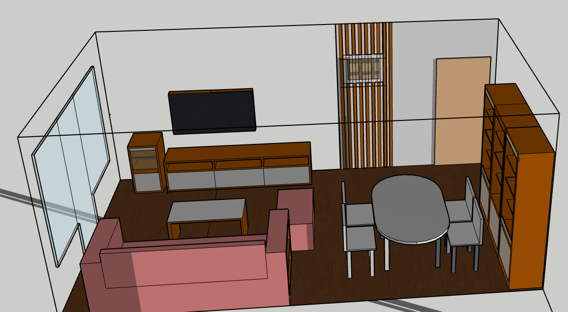 занимавам се с ремонта на жилището ми и със сетни сили поприключих грубата част, но забих на казус за обзавеждането на хола ми: за придобиване на представа, заповядайте аматьорското ми 3д
