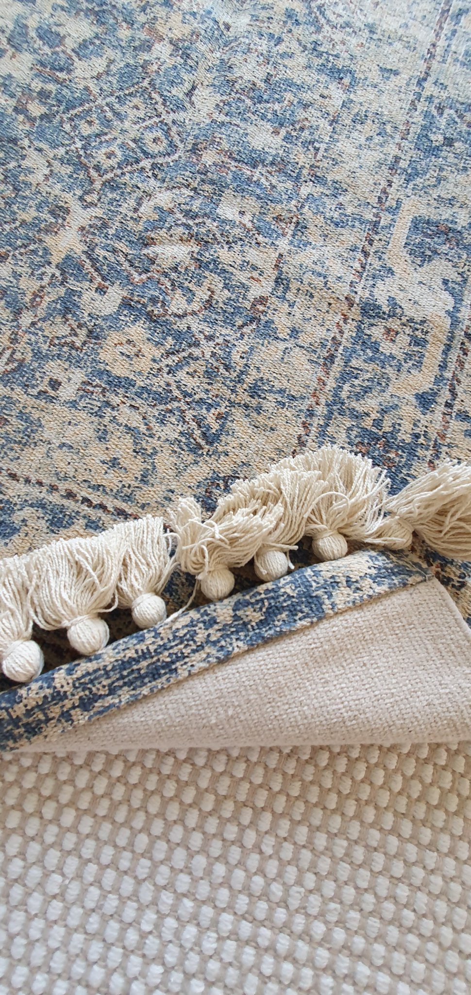 Твърдичък ,не съм очаквала друго от памук .Цветове -синьо ,кафяво ,бяло ,бежаво .