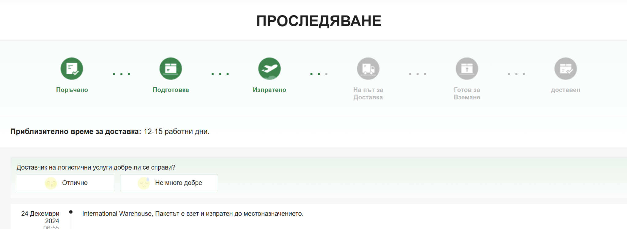 Днес получих известие от Спиди за приета пратка. Значиии пратката е в Стара Загора. Очаквана дата за доставка ми дава 24 декември (в Пловдив съм ако има значение)