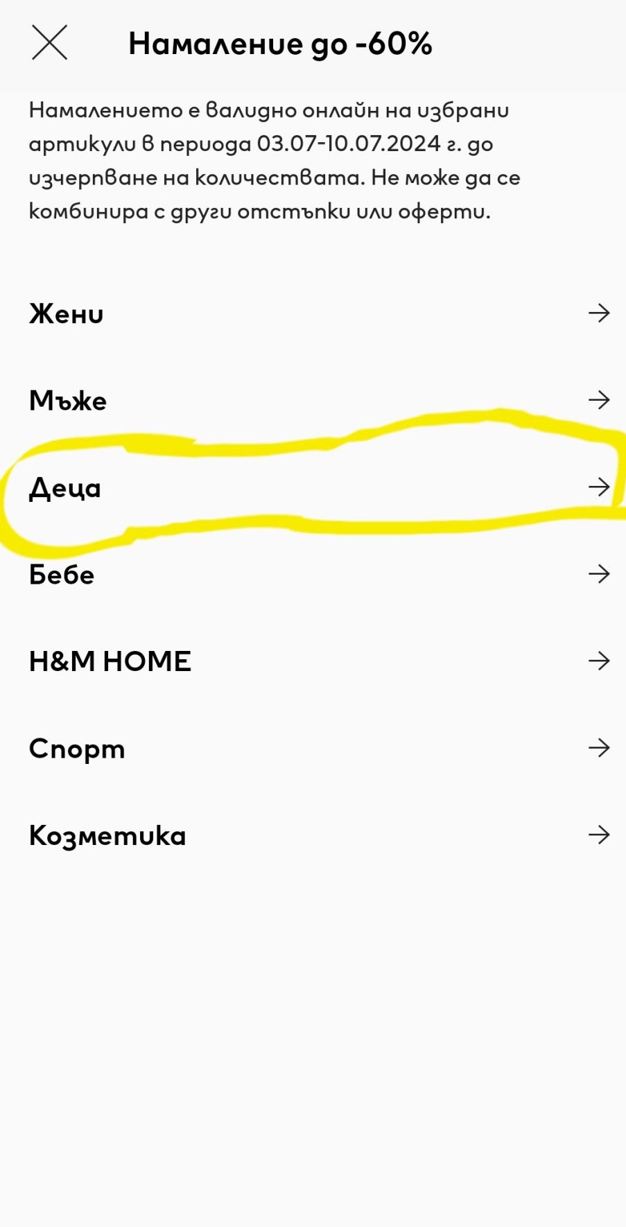 Не ми отваря детският отдел от намалението, всички други отваря, но не и него...🤔