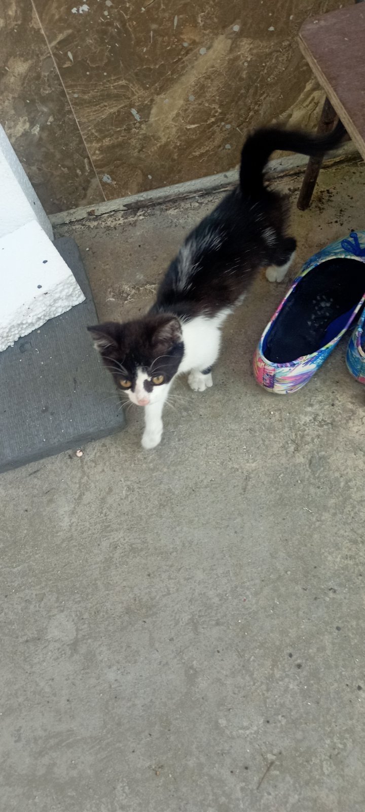 Котките край блока на майка ми, които тя храни. Сега ги храня аз, че тя е в болница. Те не ме познават, бягат от мен, затова снимките са отдалече. На едната има едно мъничко, което се страхува много, не знам дали се вижда добре.