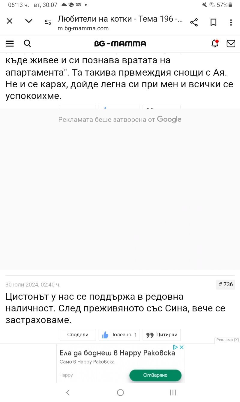Момичета, в последно време от реклами не мога да видя потребителското име или поленцето за лайк. Например сега чета за Сина и се сещам, че е cardhu. Уж ги трия, задавам опция да не се показват, изчезват, но ми остава бяло поле. Не е по темата, ама е неприятно да ги изплющят така като билбордове и да скриват текст.
