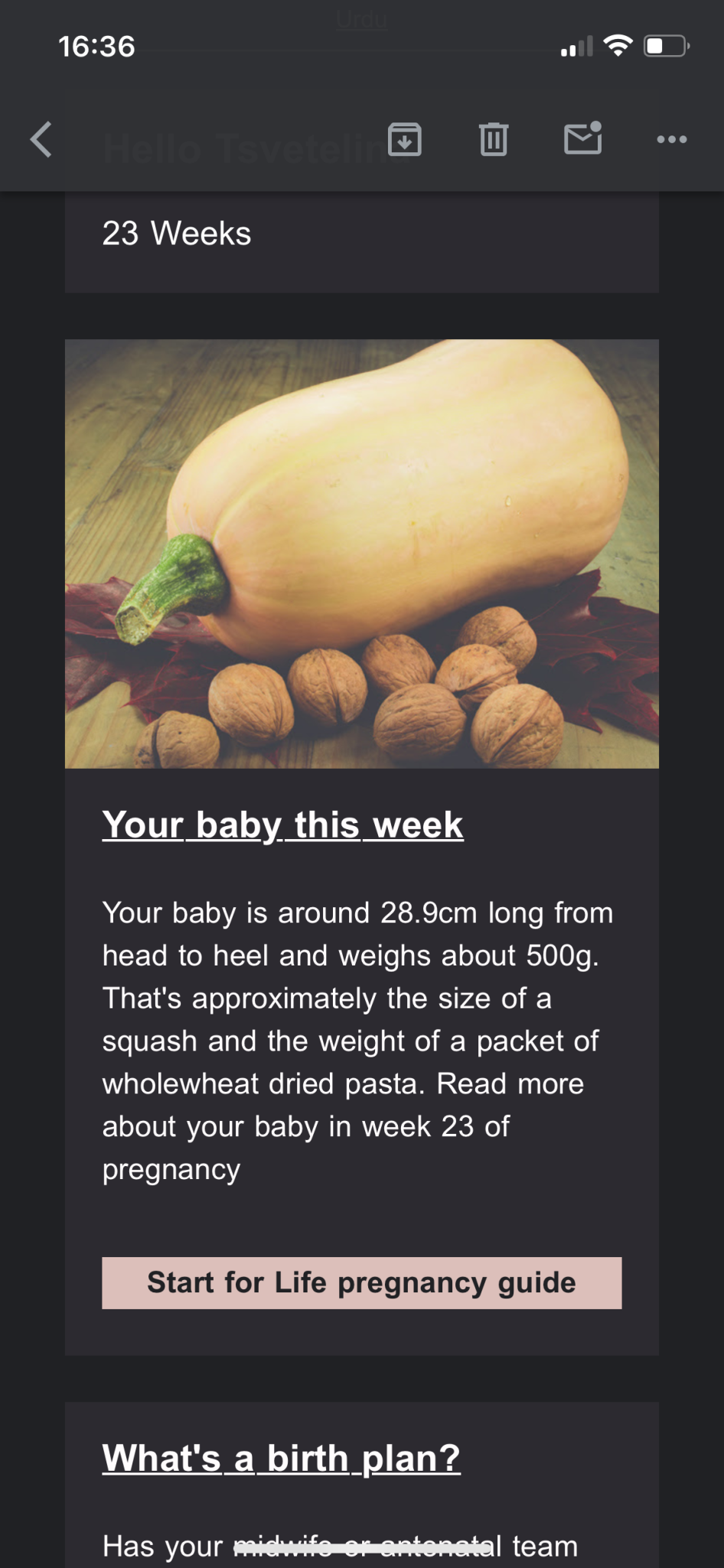 Аз пък да ви покажа колко е голяма моята буба в 23та седмица, като тиквичка е вече. От сутринта следя за ритничета, че се събудих с леко неразположение, по-скоро мисля е стомаха, отколкото коремчето и почивам цял ден, пък и много ми се спи 🤔