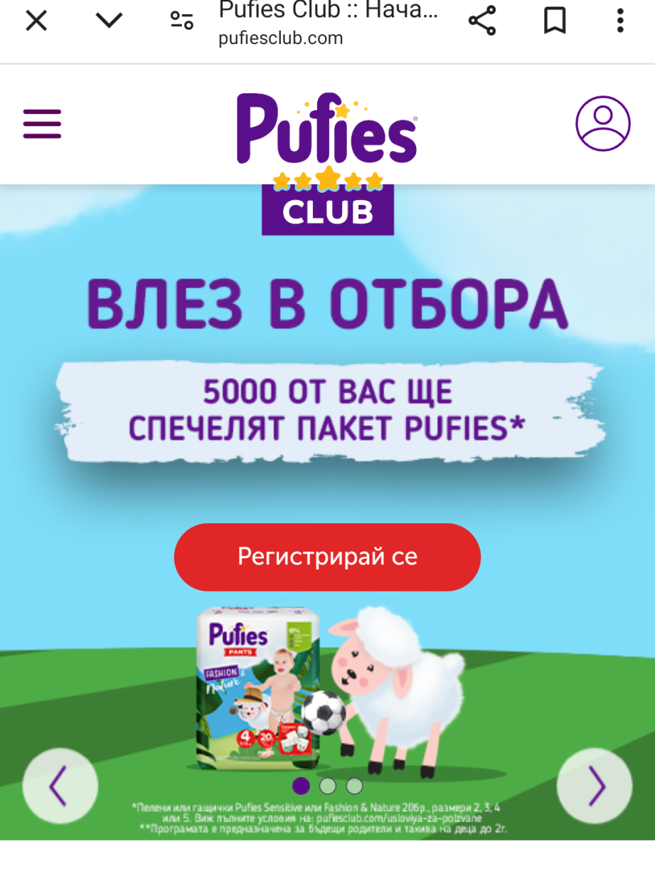 Спечелих пакет памперси Пуфис. Бях се регистрирала може би преди 2-3 седмици. Опитайте ако искате.