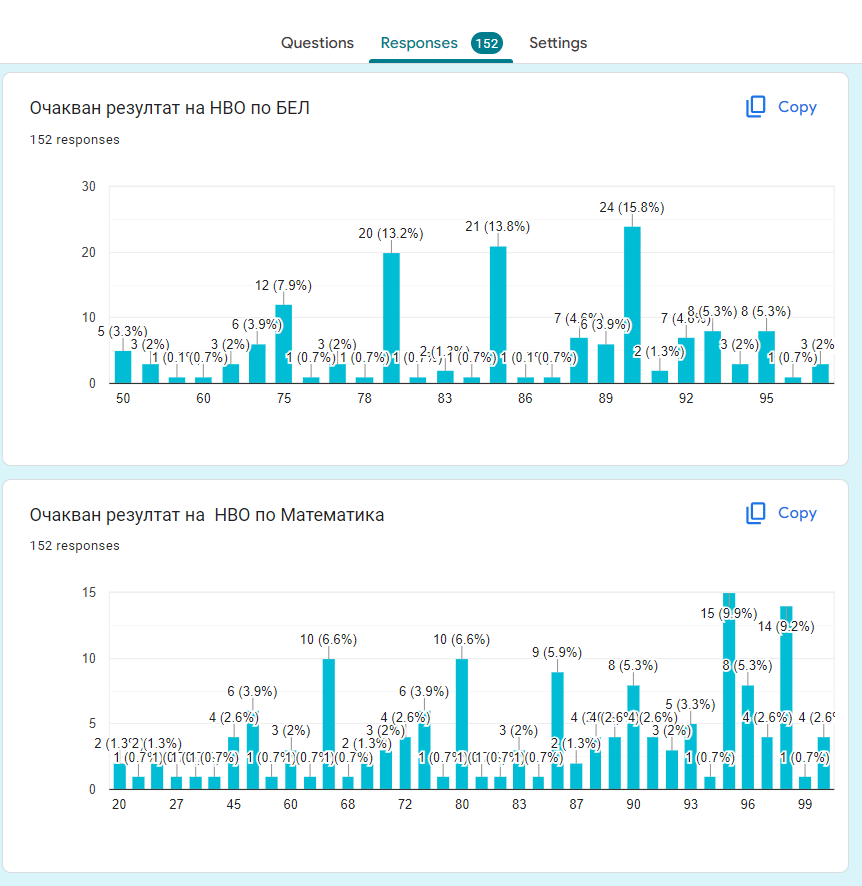 100 точки имат от дипломите, което означава, че на матурите са изкарали по 45т по двата предмета.