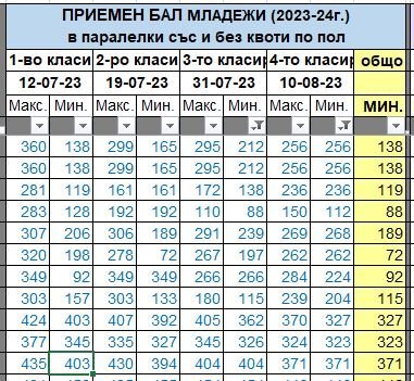 На някои от редовете минималния бал на първо е по-нисък от този на второ (напр на ред 3)