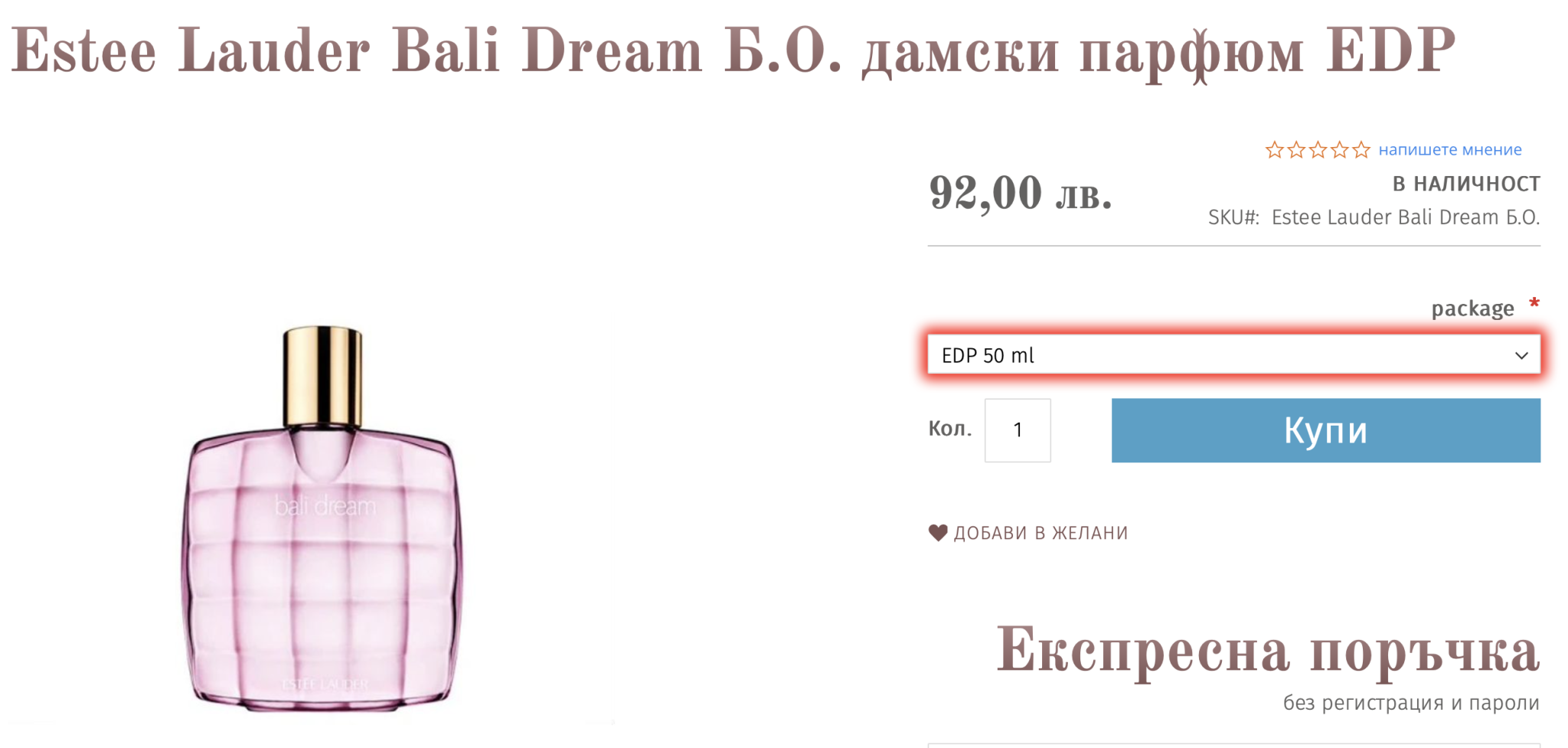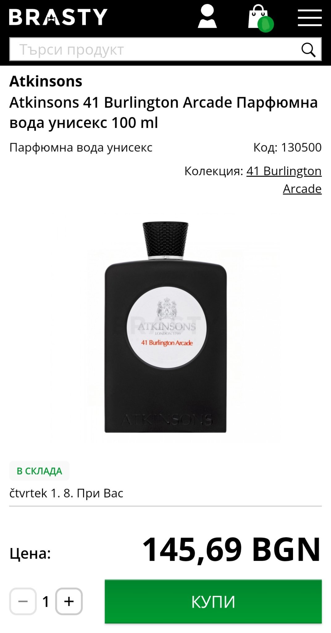 В elfragrance цената е 54лв за 100 мл и мисля, че за утре ще могат да го доставят.На арабските им се носи славата на трайни парфюми, но при мен шестте ,които съм ползвала не издържат повече от 4-5 часа.