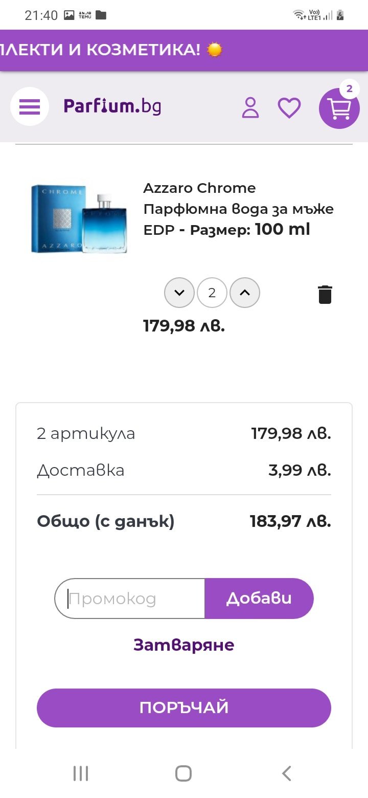 Сега опитвам да поръчам,  но ми начислява такса за доставка.