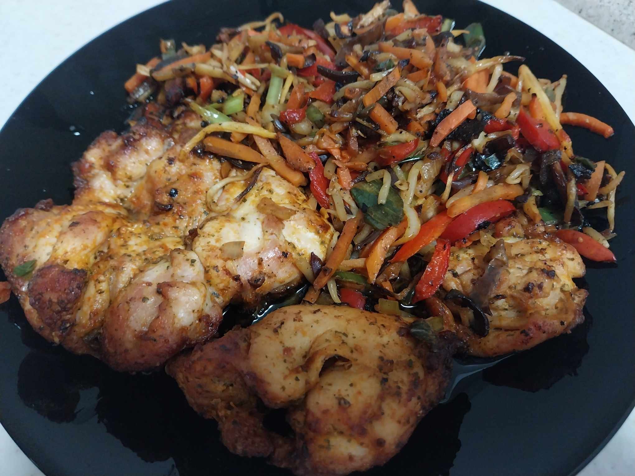И за да съм по темата - днешната манджа: пържоли от бут + лидълски микс