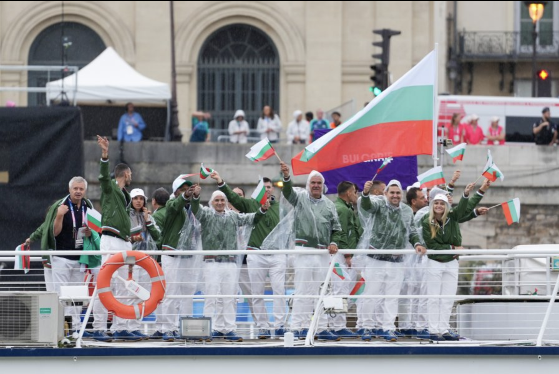 Изпуснах нашата лодка, но намерих снимки. Тях ги захапаха за зелените якета. Нормален цвят, на мен ми харесва. Иначе като цяло видях много неподправени емоции - ентусиазирани и усмихнати лица сред състезателите, когато минаваха по Сена, това вече рядко се вижда.