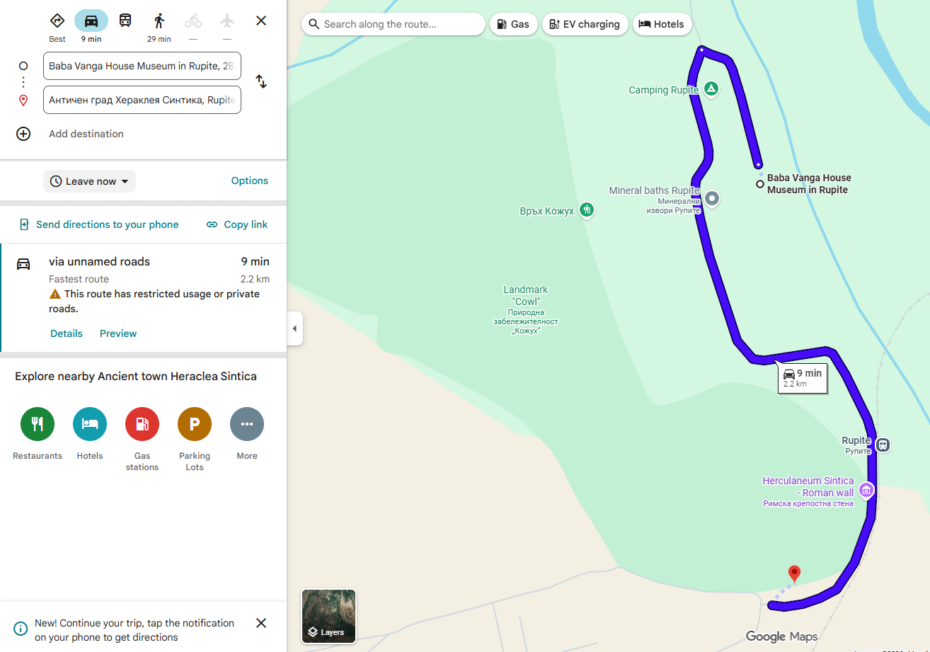Понеже Рупите бяха споменати, ще пиша и за тях. По-конкретно, ако решите да идете до Рупите, на 2 км от тях с автомобил се стига до Хераклея Синтика. Хераклея Синтика е голям античен тракийски град (град на Херакъл / Херкулес), открит преди около 20 години. Преди това учените са знаели че съществува, но не са знаели точното местоположение. Казват че това, което в момента е открито от античния град и е видимо и достъпно за посетители, е около 2-3% от целия античен град, който все още е под земята. Там постоянно работят и откриват нови и нови неща. Една част от откритите артефакти са откарани и налични за виждане в музея в Петрич, включително 2 големи статуи (Хермес и Херакъл).