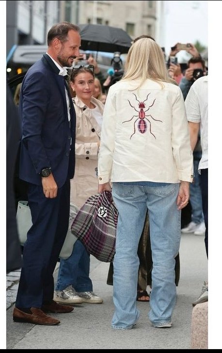 Забелязах ММ на чантата й - много умно като има двойно име, където и двете започват с М. Това казвам, че тя понякога носи дрехи на норвежки дизайнери, но щеше да е много хубаво, ако всичките й тоалети на тази сватба бяха норвежки. И носията като е норвежка щеше да се получи много хубаво. Това щеше да е хубава реклама на норвежките дизайнери. Същото важи и за Ингри, де. Но както и да е, избрали са дрехи, които са искали.