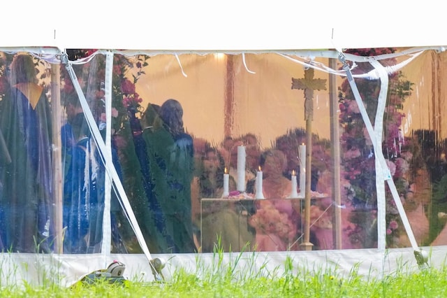 Сега ми попадна кратко видео. ТV2, частният канал, който винаги излъчва от кралските събития съвсем очаквано са помъкнали 40 кила камера нагоре по камънаците, за да намерят точното място да снимат в шатрата.