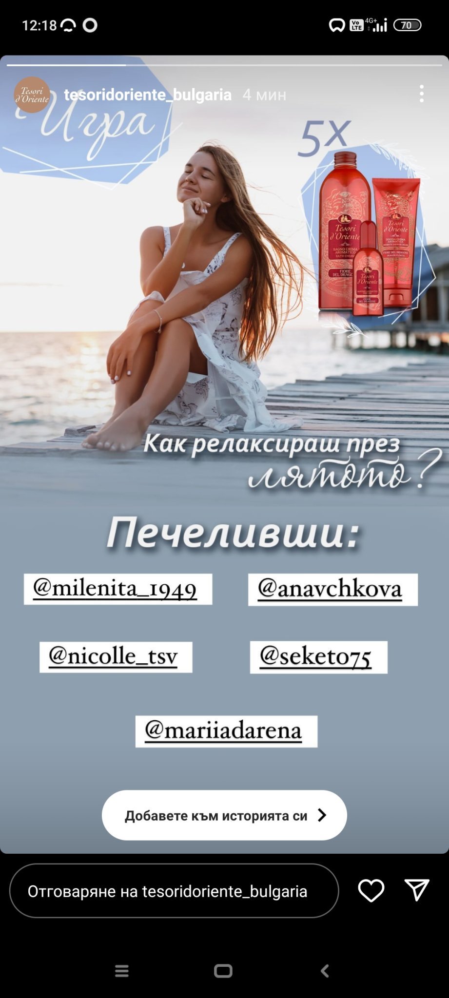 Аз нямам дори сийване на това, което им написах вчера след тегленето. Ще почакам за отговор. Несериозно е да си качват сторита редовно след тегленето и да си затварят очите за недоволството на не малко хора. Нямаше и да го отбелязвам, но бяха обявили ден за теглене 21.07, а изтеглиха на 22.07. Няма нищо всеки си има личен живот, както и някакви спънки, но ако фирма поддържа профилите на бранда Миаманте и Лидия Алфа, те това им е работата. А има едно мълчание и неглижиране, може и да проверяват, но нека уважат нас последователите, които наистина сме заинтересовани.  Интересно колко хора им писахме и те не отвърнаха поне с едно стори към всички ни, като няма да бъде личен отговорът…