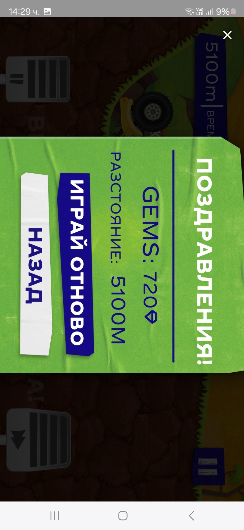Здравейте, отговарям с малко закъснение, играта с джипката в КК, дава около 970 gems, днес от 1вият опит обърнах джипката на 250 gems, 2рият опит стигнах до 5км, като след 2рият км, не дава gems.