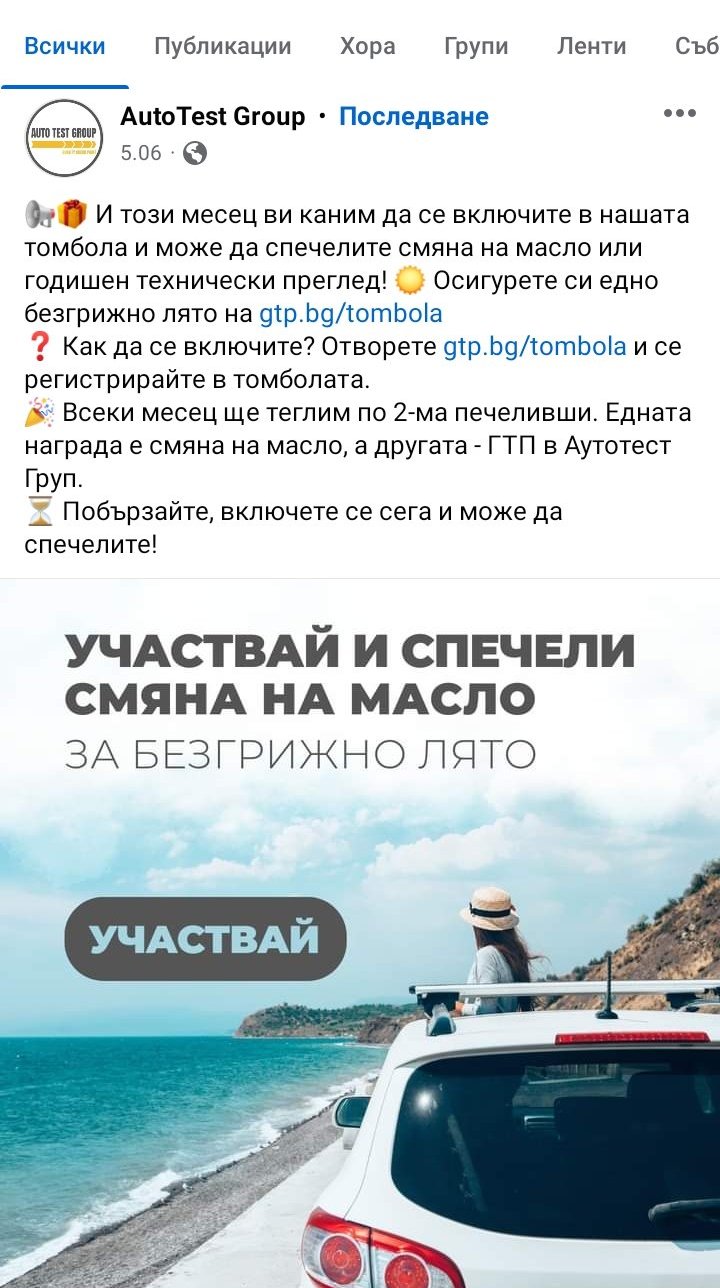 Днес ми се обадиха от ГТП "Аутотест груп", че съм спечелила 15% намаление за годишен преглед на автомобил...пък нямам запис да съм участвала в някаква такава игра. Дали не помня от жегите или съм за гинко билоба Rolling Eyes Има ли други спечелили?