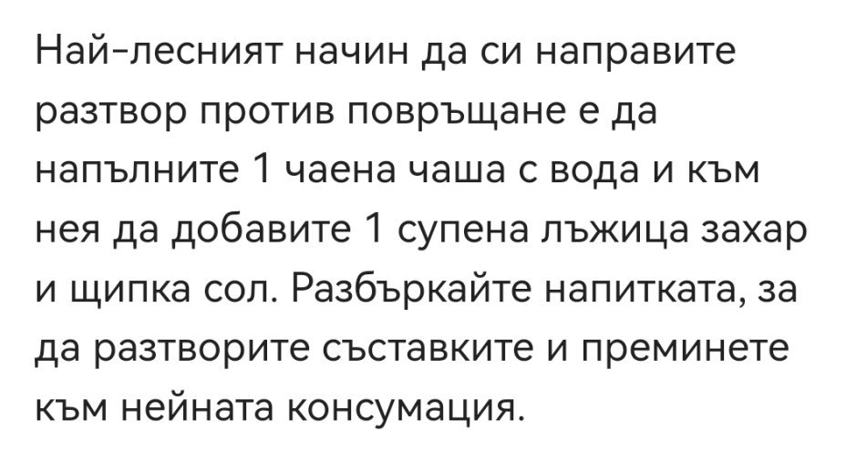 Здравейте за обезводняване имаше една домашна рецепта провери в Интернет. Аз съм я правила за детето но не си спомням точно какво беше само помня че имаше хималайска сол и захар но не помня пропорциите ако я намеря ще я прикача.