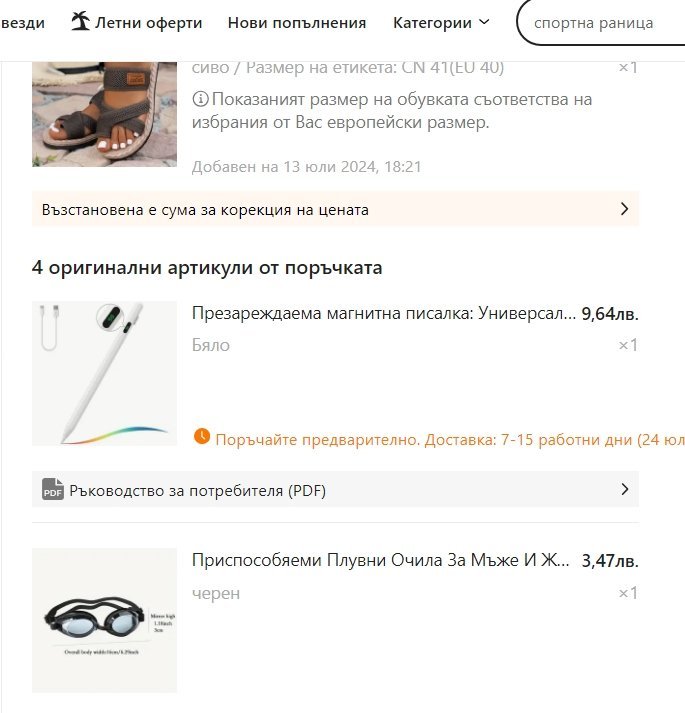 След като направите поръчка, имате 30 дни, през които можете да коригирате цената. За да направите това, отидете в детайлите на поръчката и щракнете върху бутона „Коригиране на цената“. Това ще покаже артикули с намалена цена. Можете да получите разликата в кредит Temu или във вашата карта и тази корекция може да се използва многократно в рамките на определения период.
