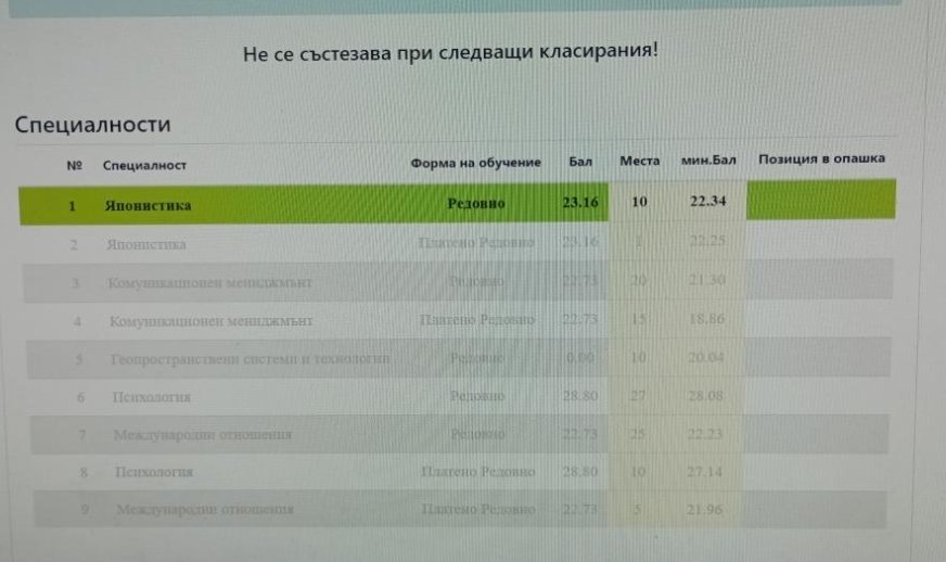 Честито на похвалилите се с прием! Аз мисля, че ще има голямо  движение на второ надолу… Психологията ни скри шапките на всички 🤷♀.