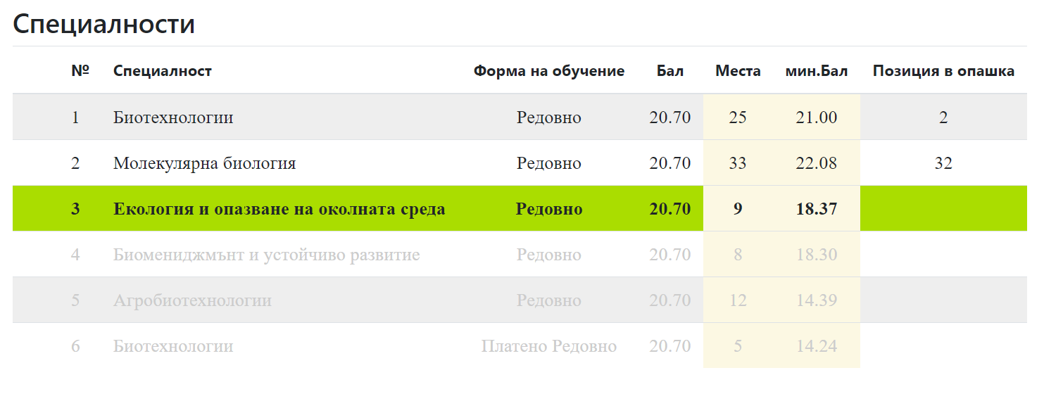 Здравейте! Прилагам и аз минимални балове за СУ на някои специалности от биологическия факултет (момиче) за статистиката Hug