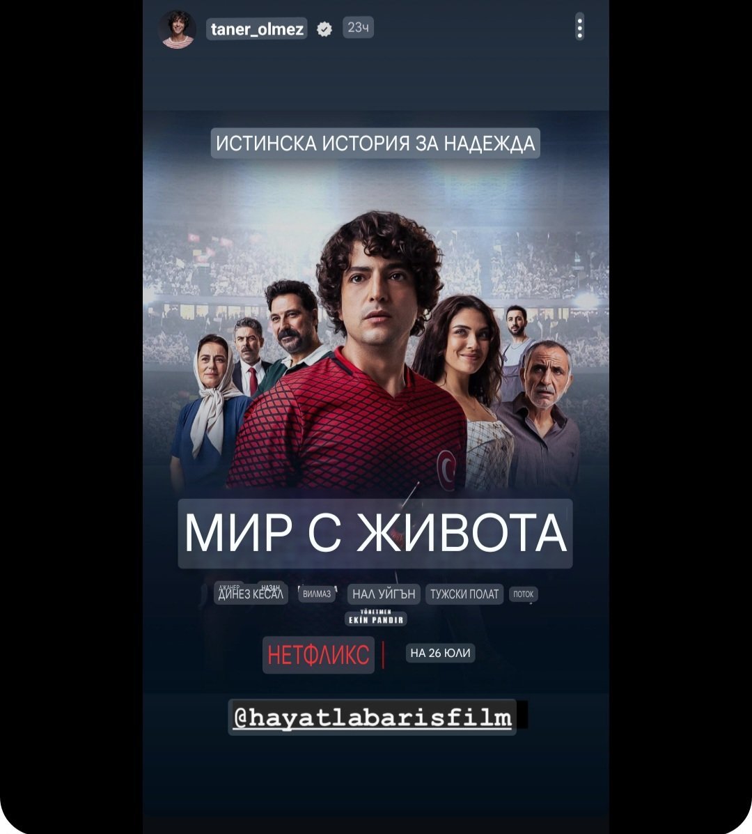 Филмът на Танер Йолмез "В мир с живота", тръгва в Нетфликс на 26 юли.