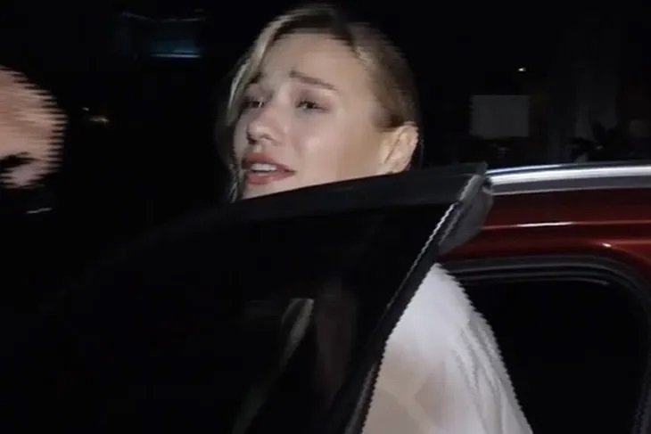 Sümeyye Aydoğan беше уловена от камера да напуска място в Maslak.