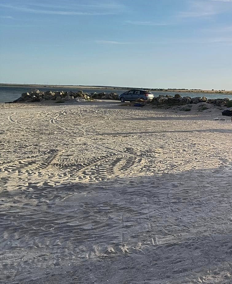 и от страната на лодките (пътят слиза до самото море и са разчистили камъните за да могат да влизат на плажа с трактори):