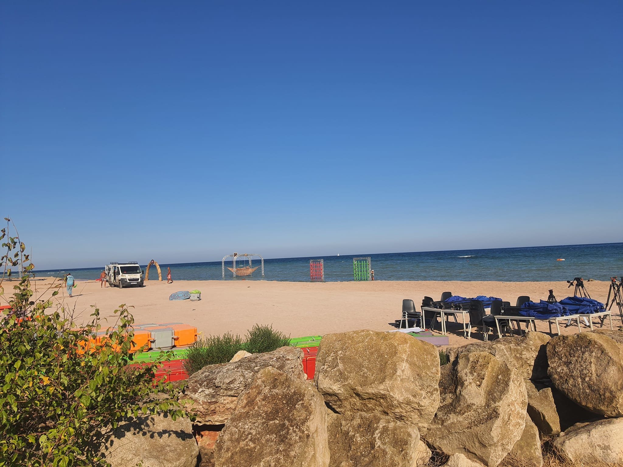 Днес е имало битка на плажа: на една снимка от около 18:00 днес се виждат знамена там, обаче е от много далеч: