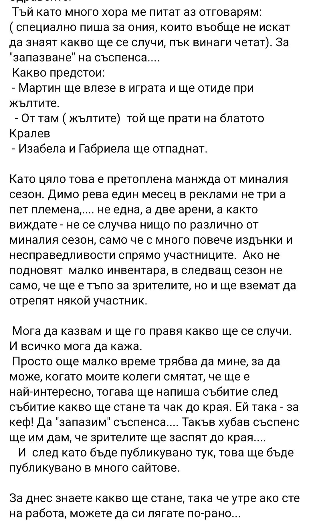 Спойлери от реалити предавания - тема 19